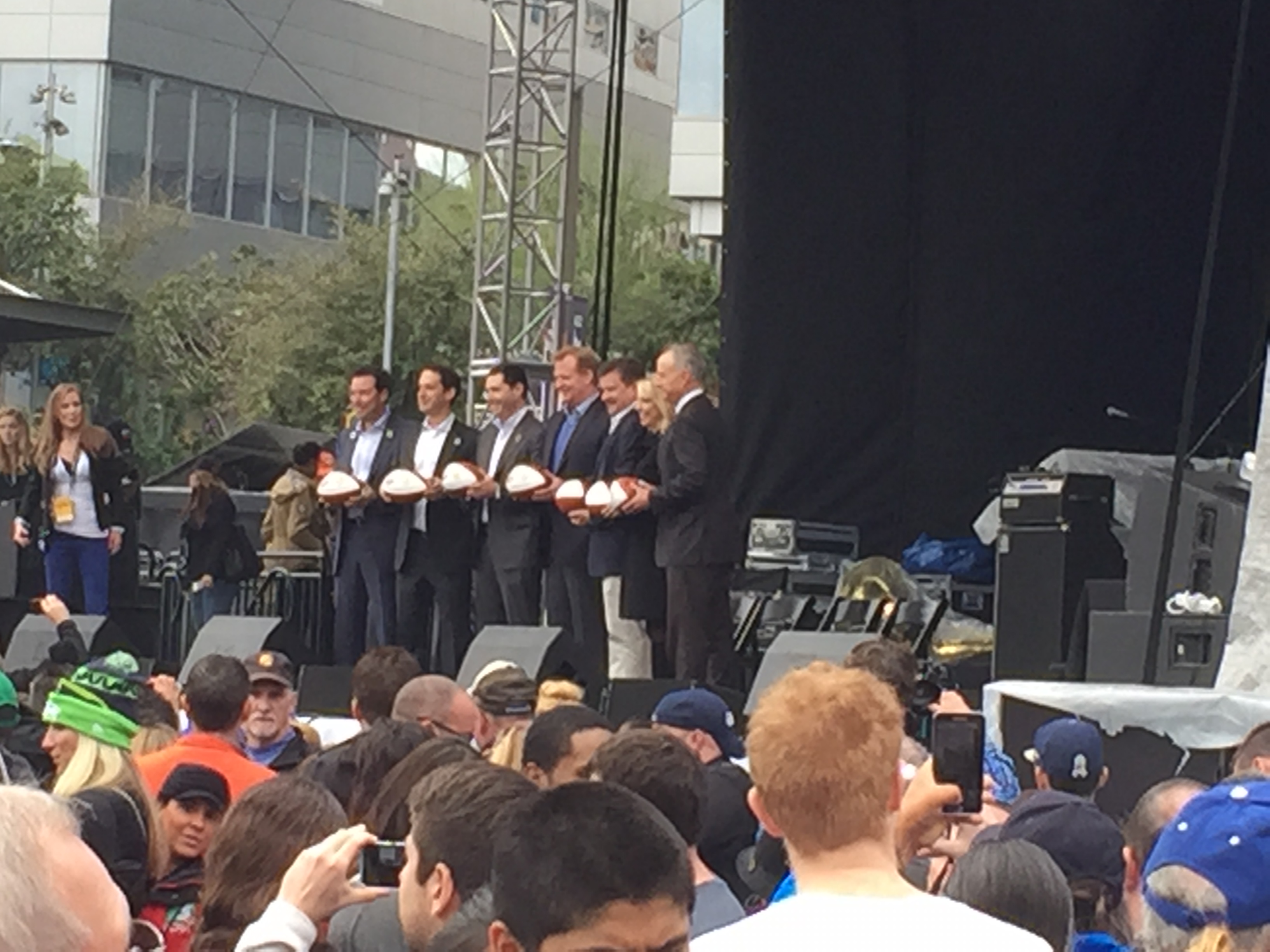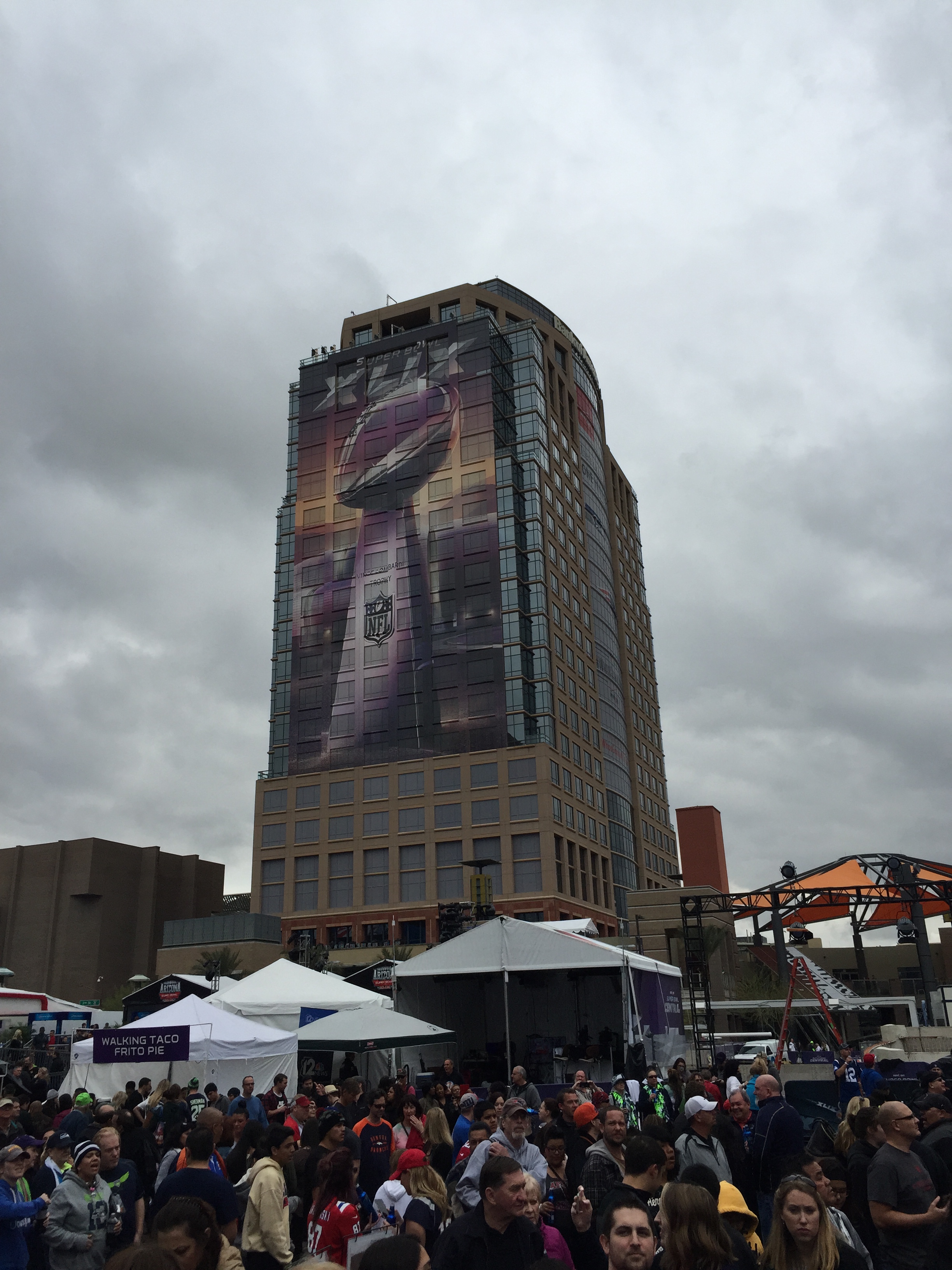 So as some of you may know, yours truly went to Arizona to be around all the Super Bowl festivities, and man was it fun! On Saturday we went downtown for all the parties and events. There were free concerts, buildings that were wrapped in Super Bowl regalia, and it was as busy as the Minnesota State Fair. We even saw Roger Goodell in person (he was not booed). I am not remotely exaggerating, but Seahawks fans outnumbered Patriots fans 200-1. Across downtown, somebody would yell “Sea” and the entire block would erupt in “Hawks.” It almost gave you the chills, and helped understand why the 12th man is so powerful. The line for the NFL experience was a mile and a half long, so we skipped that part, but apparently getting an autograph from Marshall Faulk was a piece of cake in there, darn!