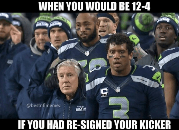 - Blair Walsh missed a FG which would have given them a chance at the playoffs. He missed 3 game winning kicks this year, meaning the Seahawks could have been 12-4 and won their division.
